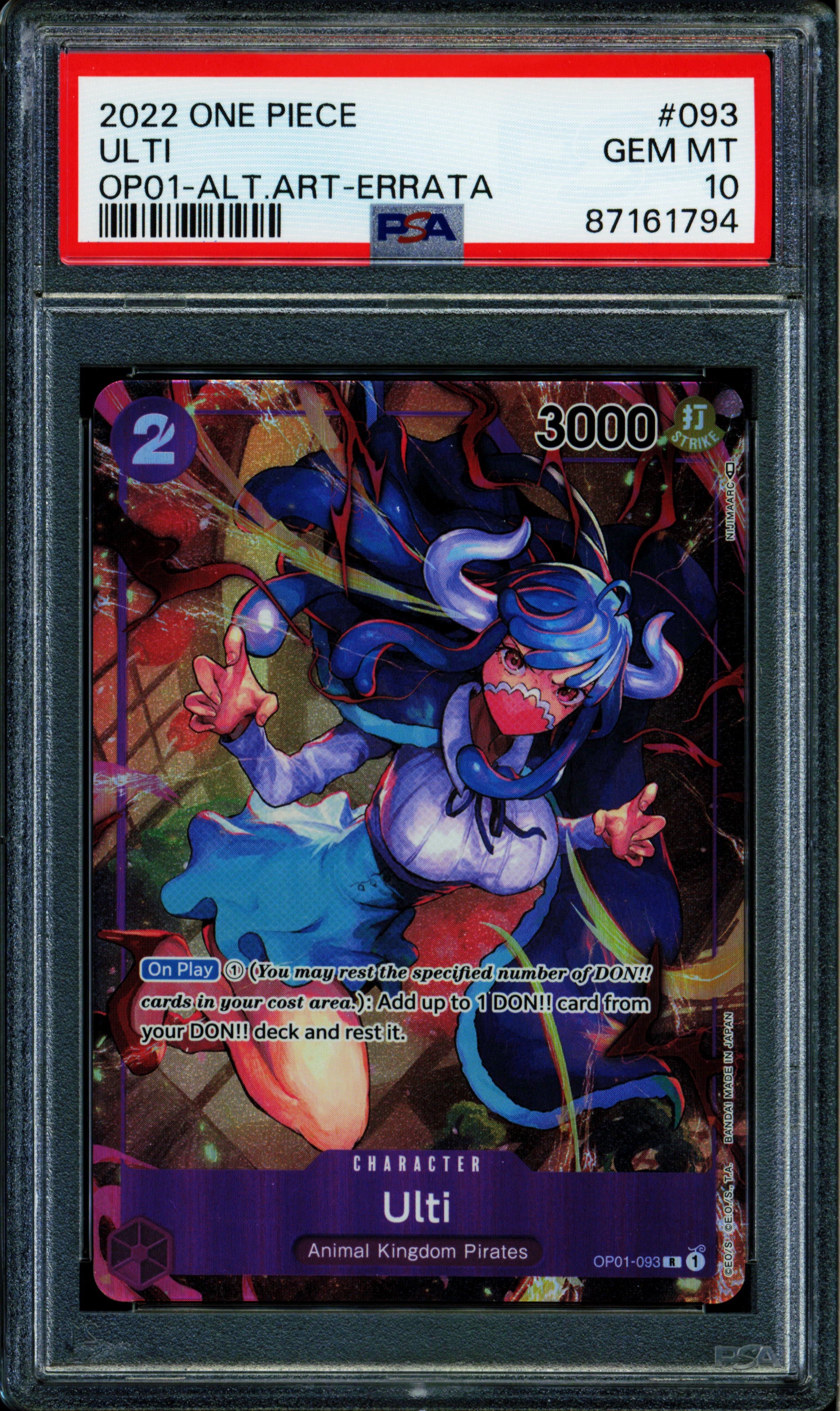 Ulti (Errata) - OP01-093 - PSA 10 - Alt Art - OP01 - One Piece - 61794 VendorPSA Share WhatsApp Deel Tweet Pin it Messenger Email Last stock! Ulti (Errata) - OP01-093 - PSA 10 - Alt Art - OP01 - One Piece - 61794 VendorPSA Share WhatsApp Deel Tweet Pin it Messenger Email Product form Condition: PSA Graded 1 in stock $80.00 Quantity Add to cart This item is a recurring or deferred purchase. By continuing, I agree to the cancellation policy and authorize you to charge my payment method at the prices, frequency and dates listed on this page until my order is fulfilled or I cancel, if permitted.
