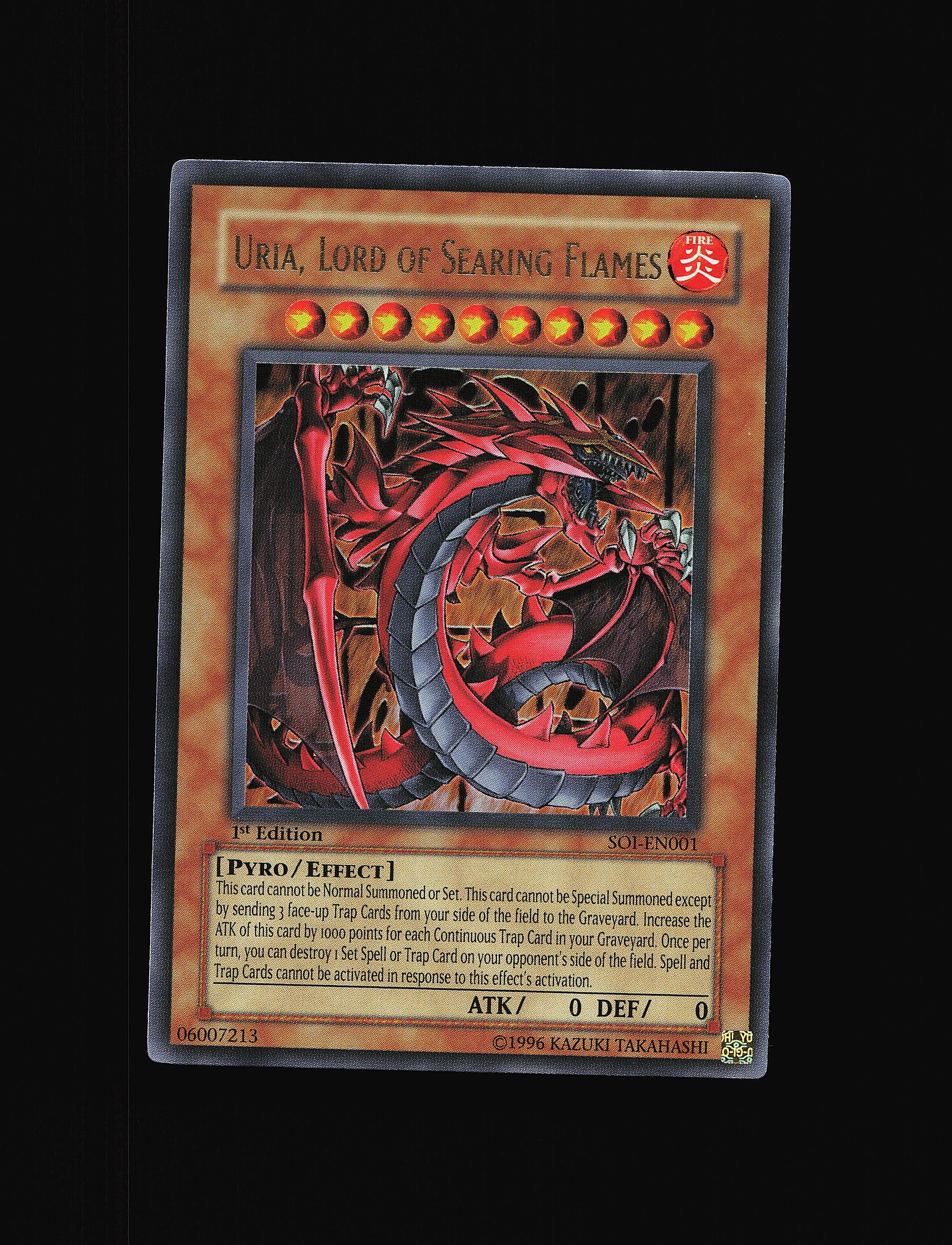 Get yourself this, Uria, Lord of Searing Flames - SOI-EN001 - LP - 1st Edition Ultra - SOI - Yu-Gi-Oh - D2-1, an amazing raw near mint card at an affordbale price.