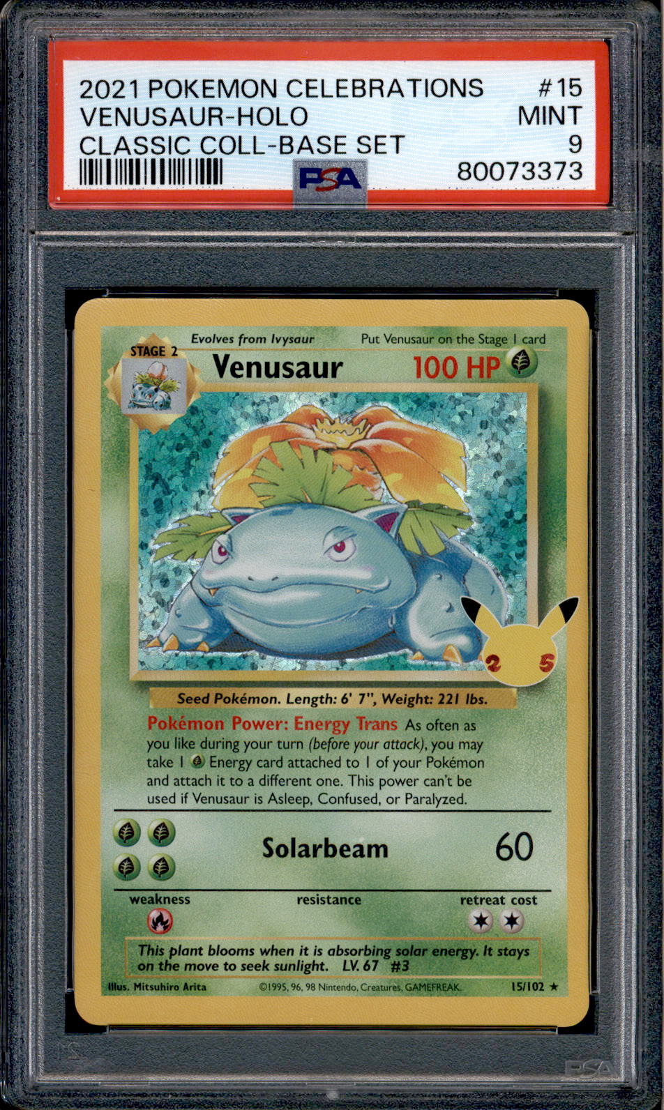 Venusaur - 15/102 - PSA 9 - Holo - Celebrations - Pokemon - 73373 VendorPSA Share WhatsApp Deel Tweet Pin it Messenger Email Venusaur - 15/102 - PSA 9 - Holo - Celebrations - Pokemon - 73373 VendorPSA Share WhatsApp Deel Tweet Pin it Messenger Email Product form Condition: PSA Graded Out of stock $20.00 Quantity Out of stock This item is a recurring or deferred purchase. By continuing, I agree to the cancellation policy and authorize you to charge my payment method at the prices, frequency and dates listed on this page until my order is fulfilled or I cancel, if permitted.