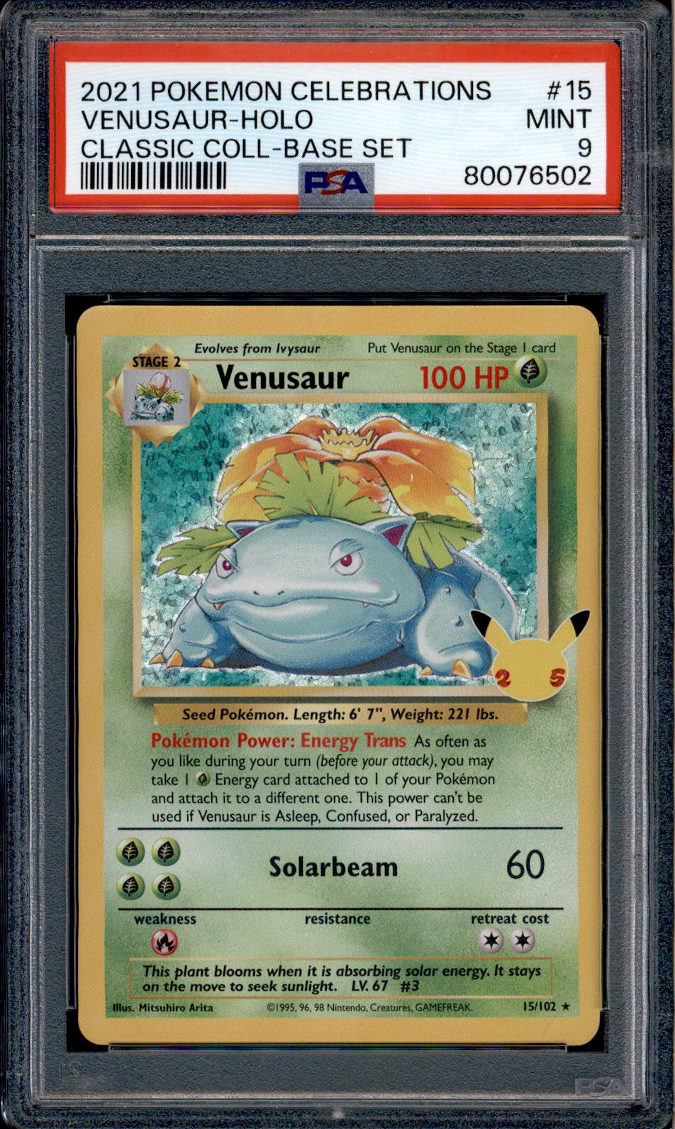 Venusaur - 15/102 - PSA 9 - Holo - Celebrations - Pokemon - 76502 VendorPSA Share WhatsApp Deel Tweet Pin it Messenger Email Venusaur - 15/102 - PSA 9 - Holo - Celebrations - Pokemon - 76502 VendorPSA Share WhatsApp Deel Tweet Pin it Messenger Email Product form Condition: PSA Graded Out of stock $25.00 Quantity Out of stock This item is a recurring or deferred purchase. By continuing, I agree to the cancellation policy and authorize you to charge my payment method at the prices, frequency and dates listed on this page until my order is fulfilled or I cancel, if permitted.