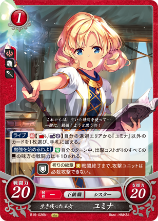 Heal [ , ] Choose 1 non-"Yumina" card from your Retreat Area, and add it to your hand. |