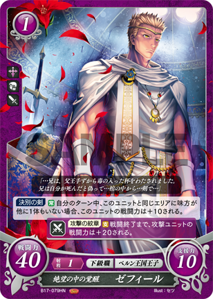 Sword of Farewells During your turn, if there are no other allies in the same area as this unit, this unit gains +10 attack. |